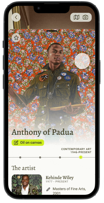 I chose to highlight Kehinde Wiley in the prototype. He is an African-American painter who restages classical portraits and sculptures.