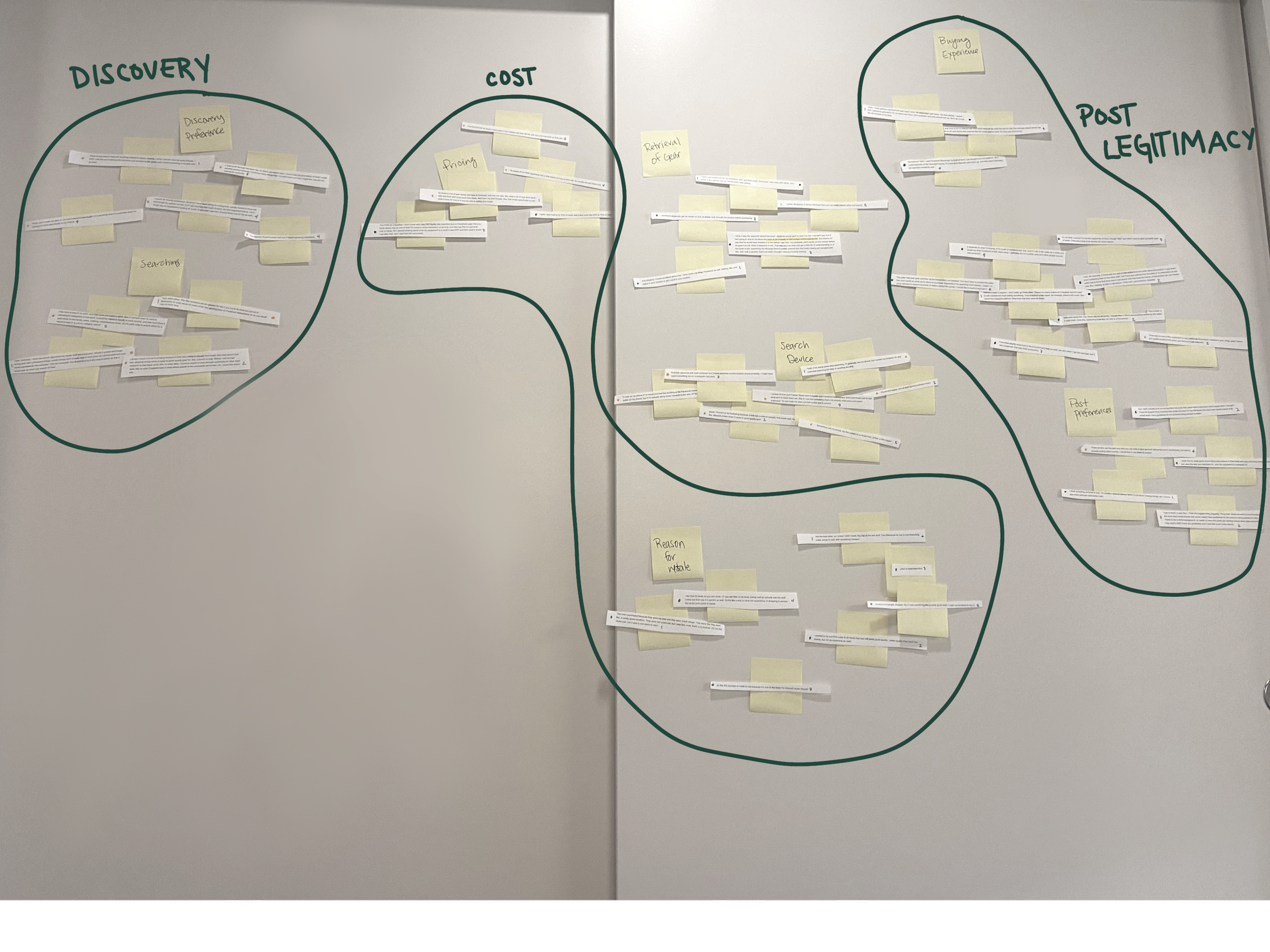 Due to the quantity of information gathered, I built an affinity map and uncovered three major themes.
